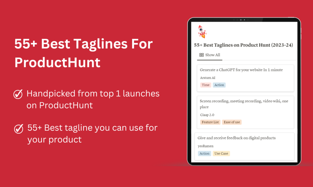 So this list of 55+ Best Taglines on Product Hunt (2023-24) is just for you.